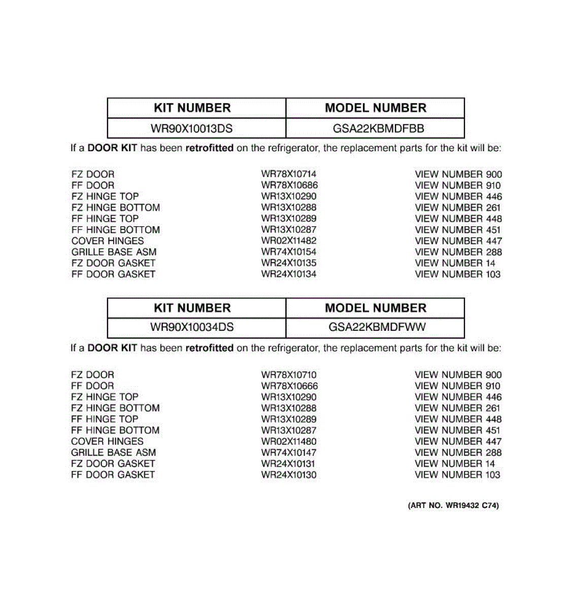 Parts for GSA22KBMDFBB