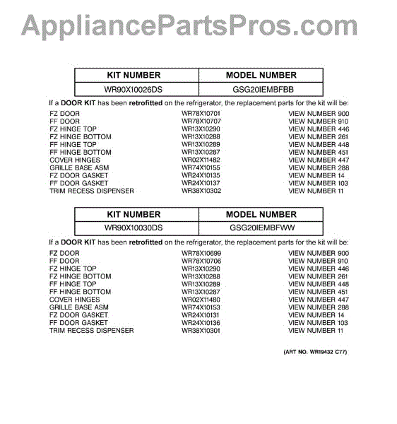 Parts for Ge GSG20IEMBFBB: 03 - Replacement Parts List Parts