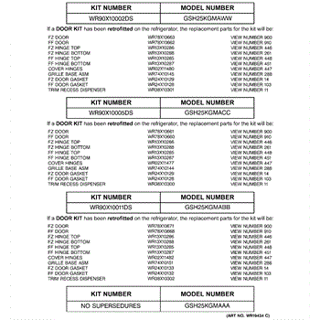 Parts for Ge GSH25KGMACC: 03 - Replacement Parts List Parts