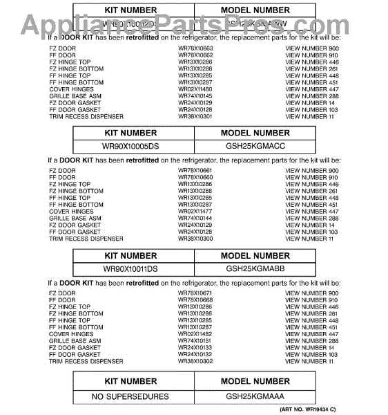 Parts for Ge GSH25KGMAWW: 03 - Replacement Parts List Parts