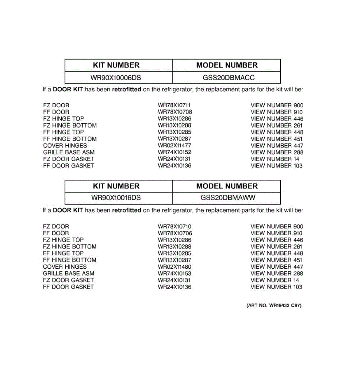 Parts for Ge GSS20DBMAWW: 02 - Replacement Parts List Parts