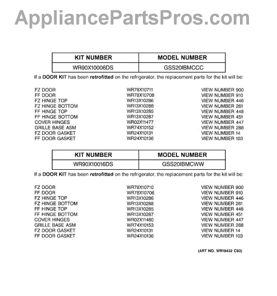 Parts for Ge GSS20IBMDCC: 03 - Replacement Parts List Parts