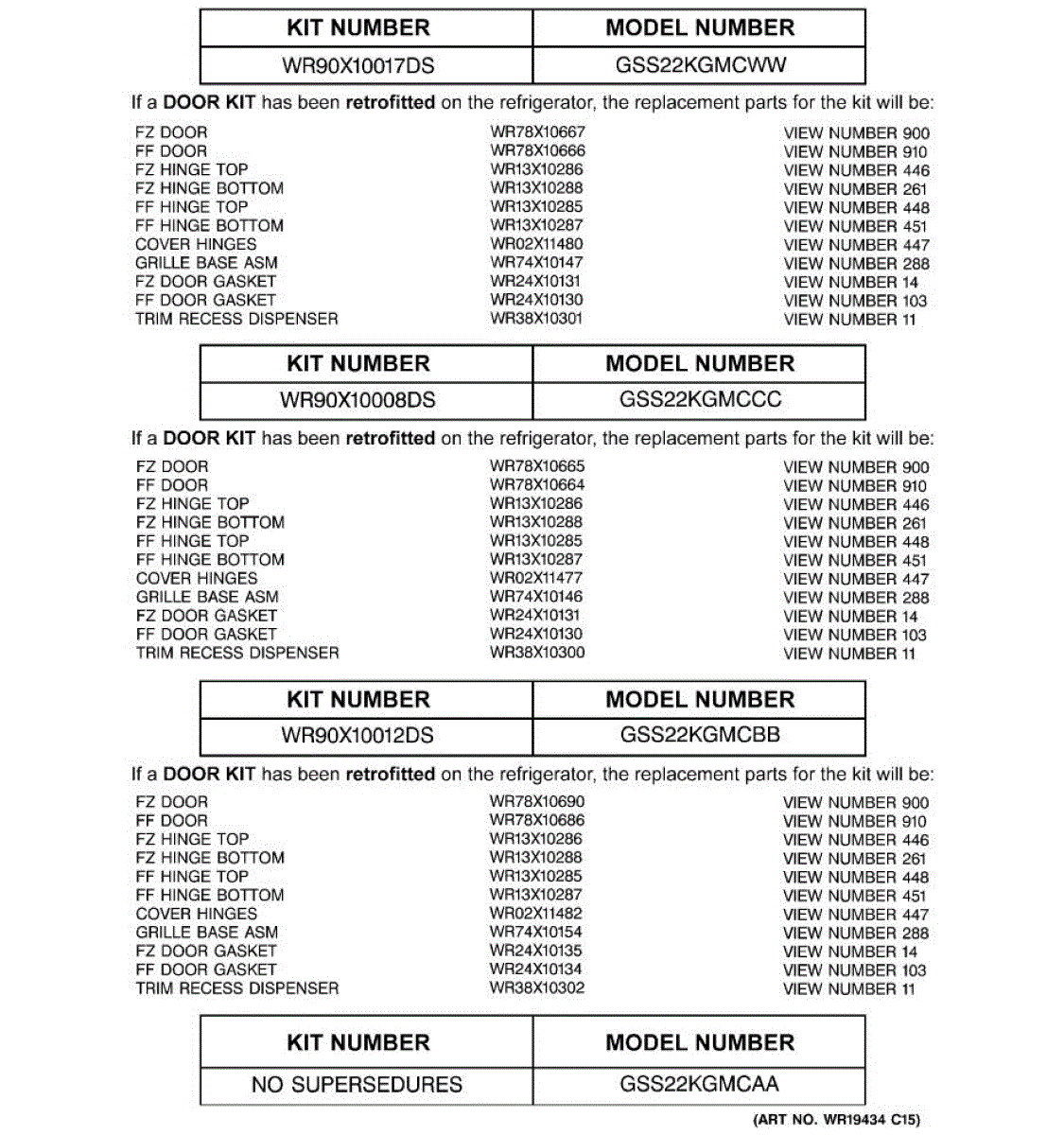 Parts for Ge GSS22KGMCBB: 03 - Replacement Parts List Parts