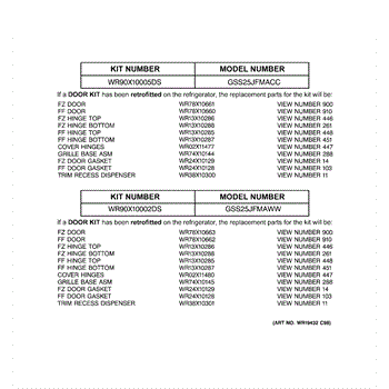 Parts for Ge GSS25JFMACC: 03 - Replacement Parts List Parts