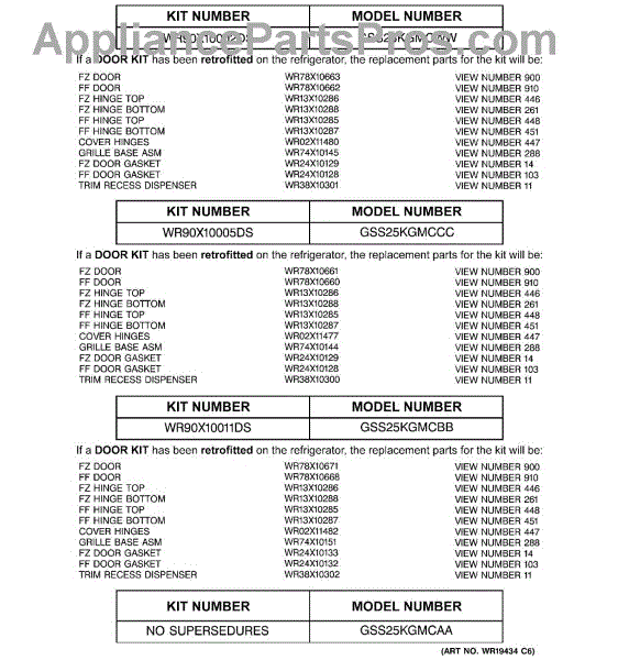 Parts for Ge GSS25KGMCBB: 03 - Replacement Parts List Parts