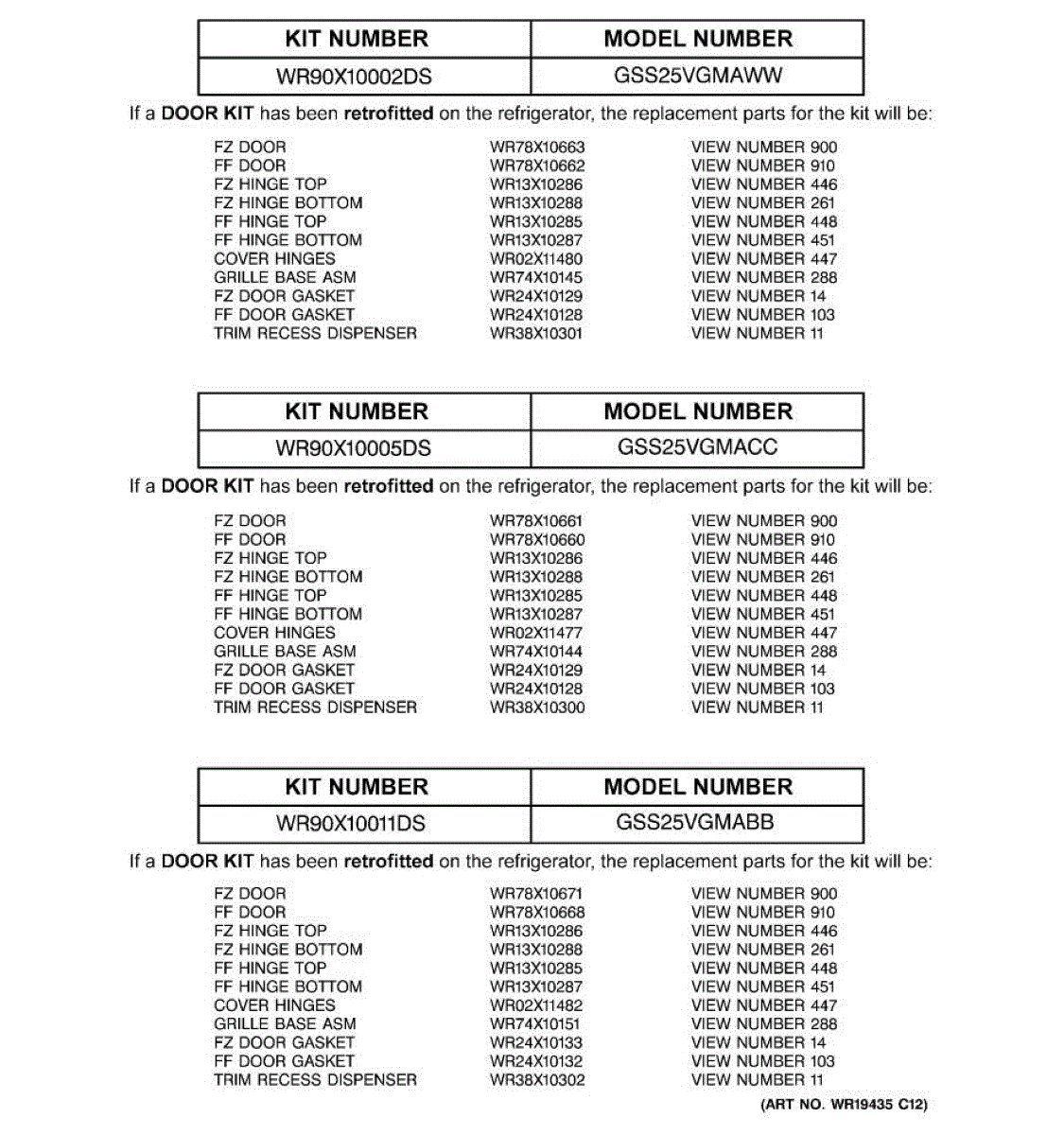 Parts for Ge GSS25VGMABB: 03 - Replacement Parts List Parts