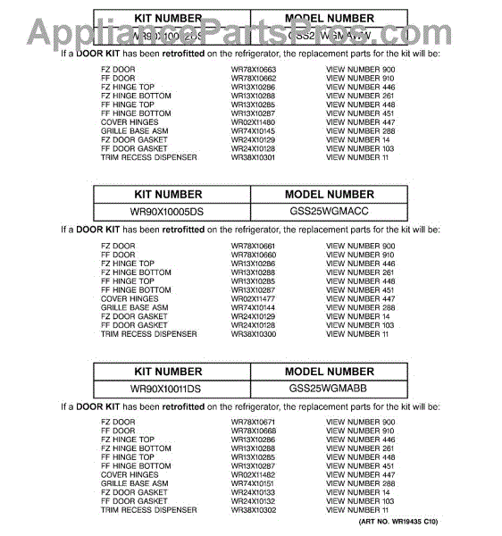 Parts for Ge GSS25WGMABB: 03 - Replacement Parts List Parts