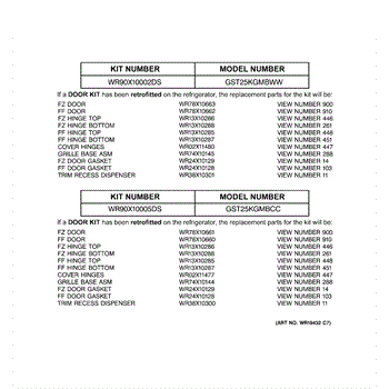Parts for Ge GST25KGMBCC: 03 - Replacement Parts List Parts