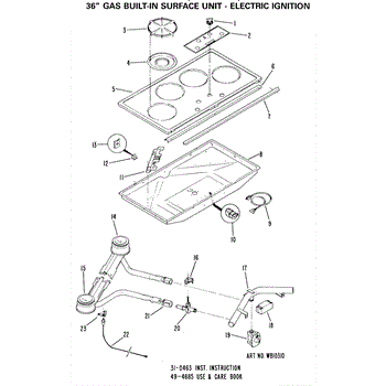Parts for Ge JGP600EH1: 01 - 36`` Gas Built-In Surface Unit-Electric Ignition Parts