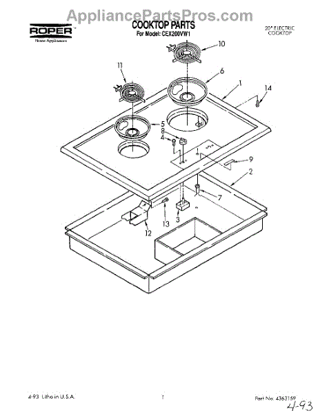 Parts for Roper CEX200VW1: 01 - Section Parts