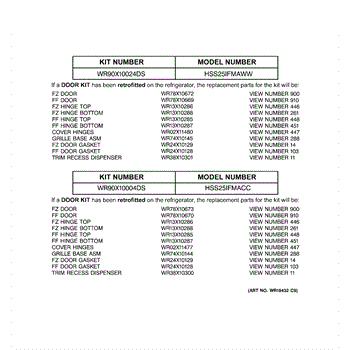 Parts for Ge HSS25IFMACC: 03 - Replacement Parts List Parts