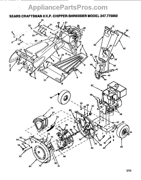 This is a chipper impeller assembly that can be used with a range of chippers and chipper-shredders. The impeller is the part of the chipper that rotates, and it is what allows for the chipping or shredding to take place. It will shred leaves, yard waste, and tree limbs. If there is an issue with the chipper impeller, it will reduce the efficiency of the machine. In some cases, it might not work at all. One of the signs that the impeller has problems is that it is turning slowly. It might also make a lot of noise.The impeller is a durable piece, but it does a lot of work. This means it is subject to wear and tear. Over time, it might become worn out or damaged, which will require a replacement. This replacement could be done by the owner. However, they need to remove the spark plug wire first and wear gloves to keep their hands safe.The chipper impeller assembly works for select machines from MTD, Troy-Bilt, Husky, and Yard Machines. This is a genuine OEM replacement part sourced from the manufacturer, and it is sold individually.