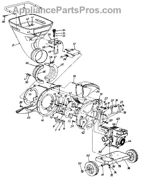 This is a chipper impeller assembly that can be used with a range of chippers and chipper-shredders. The impeller is the part of the chipper that rotates, and it is what allows for the chipping or shredding to take place. It will shred leaves, yard waste, and tree limbs. If there is an issue with the chipper impeller, it will reduce the efficiency of the machine. In some cases, it might not work at all. One of the signs that the impeller has problems is that it is turning slowly. It might also make a lot of noise.The impeller is a durable piece, but it does a lot of work. This means it is subject to wear and tear. Over time, it might become worn out or damaged, which will require a replacement. This replacement could be done by the owner. However, they need to remove the spark plug wire first and wear gloves to keep their hands safe.The chipper impeller assembly works for select machines from MTD, Troy-Bilt, Husky, and Yard Machines. This is a genuine OEM replacement part sourced from the manufacturer, and it is sold individually.