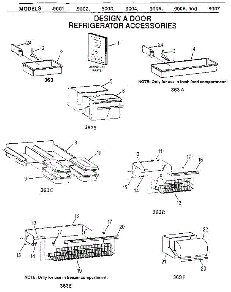 Door bin module assembly for refrigerator quick-serve compartments. Replace this structural component if cracked, broken, or missing to restore organization.