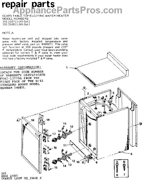 Sears Table Top Electric Water Heater