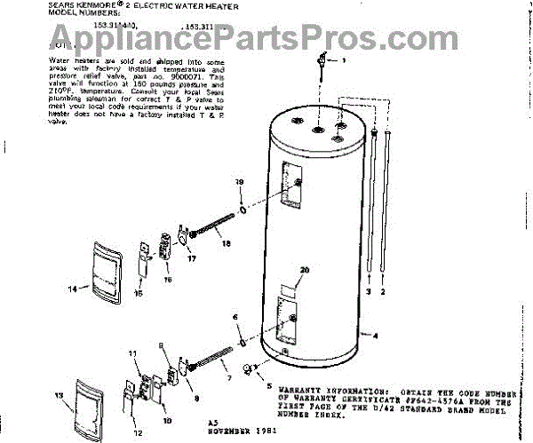 Parts for Kenmore 153.311940 (153311940, 153 311940): Replacement Parts