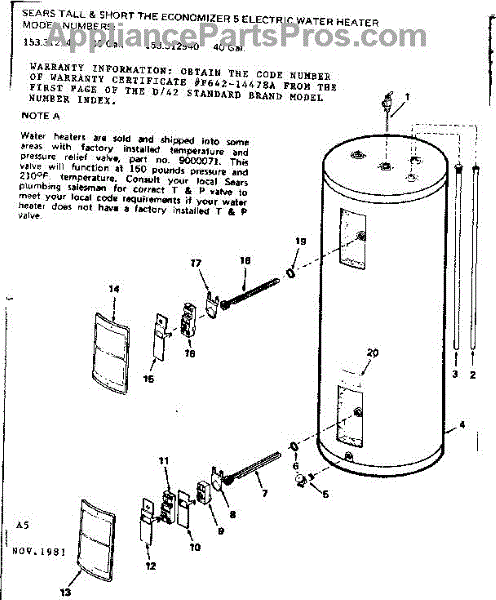 Sears Tall & Short The Economizer 5 Electric Water Heater