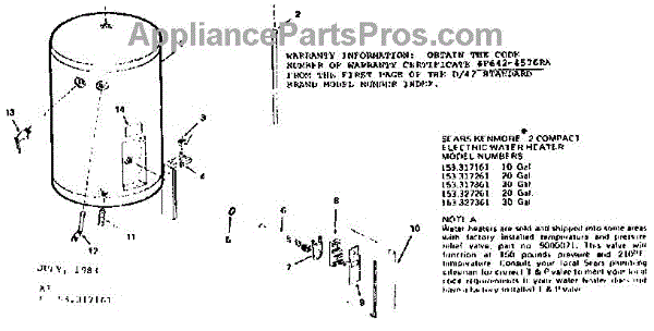Parts for Kenmore 153.317261 (153317261, 153 317261): Replacement Parts