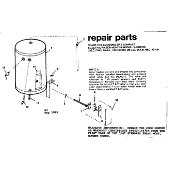 Parts for Kenmore 153.317560 (153317560, 153 317560): Replacement Parts
