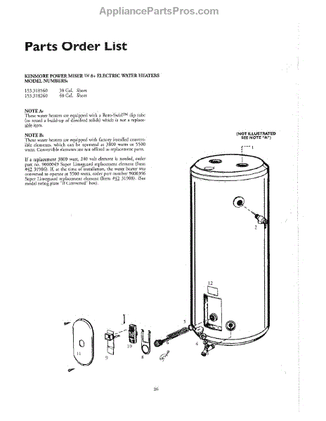 Parts for Kenmore 153.318260 (153318260, 153 318260): Replacement Parts