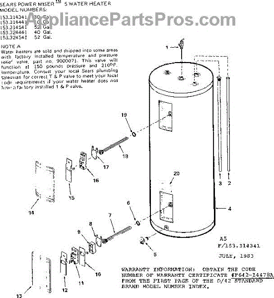 Sears Tall & Short Power Miser 5 Electric Water Heater