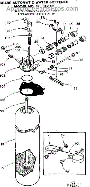 Parts for Kenmore 625.342500 (625342500, 625 342500): Resin Tank, Valve Adaptor & Assoc. Parts