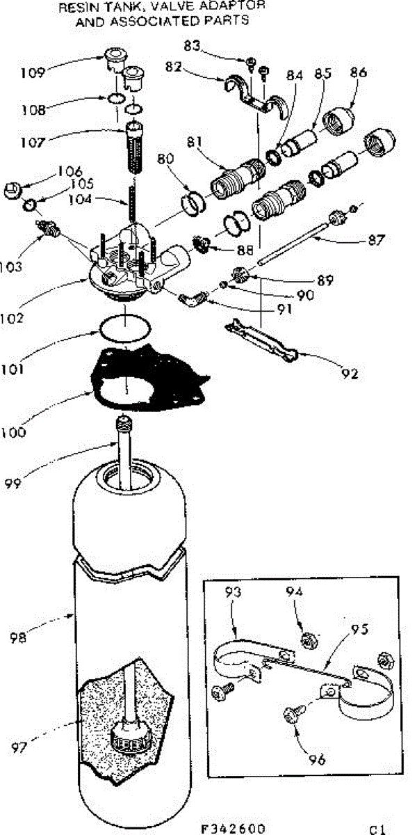 Parts for Kenmore 625.342600 (625342600, 625 342600): Resin Tank, Valve Adaptor And Associated Parts