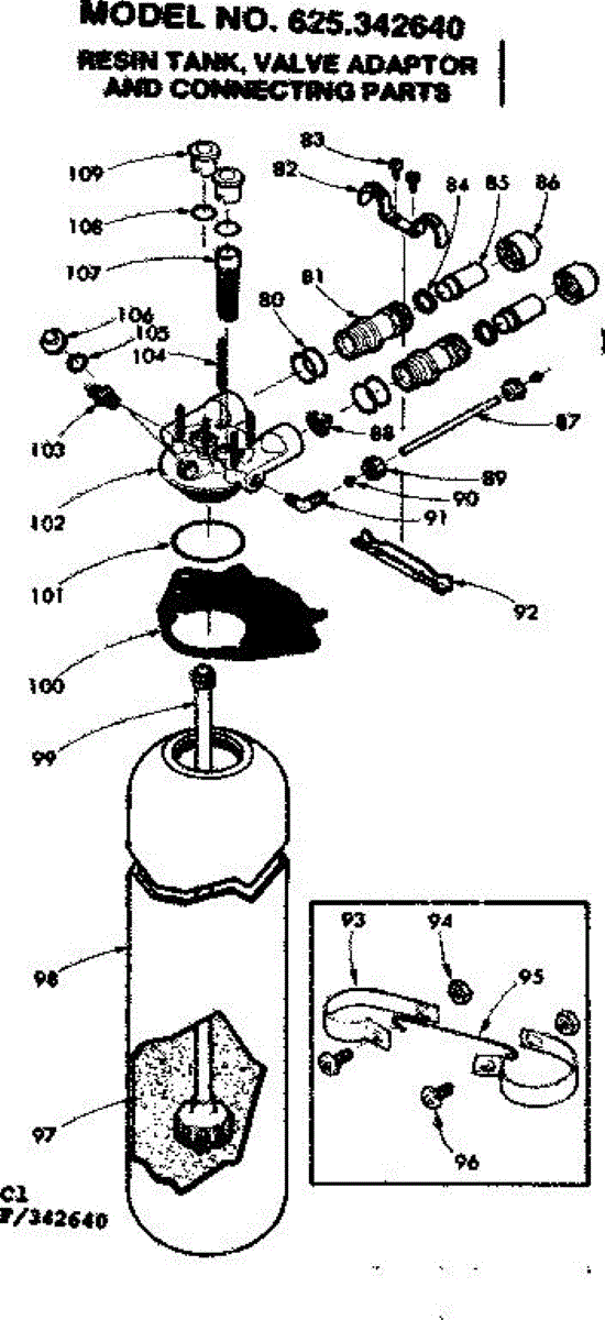 Parts for Kenmore 625.342640 (625342640, 625 342640): Resin Tank Valve Adaptor And Connecting Parts