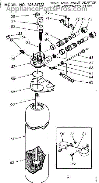 Parts for Kenmore 625.34723 (62534723, 625 34723): Resin Tank, Valve Adaptor & Assc. Parts