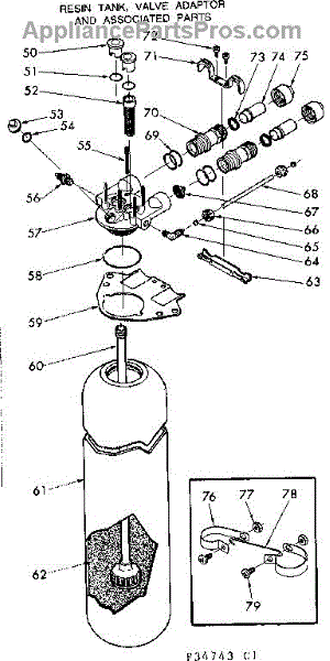 Parts for Kenmore 625.34743 (62534743, 625 34743): Resin Tank, Valve Adaptor & Associated Parts