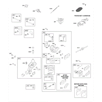 Parts for Briggs & Stratton 12Y602-0110-E6: Rev Limiter, Carburetor, Air Cleaner Base, Controls Parts