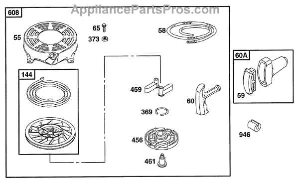Parts for Briggs & Stratton 12S802-0810-01: Rewind Assembly Parts