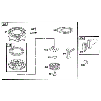 Parts for Briggs & Stratton 12S807-0857-99: Rewind Assembly Parts