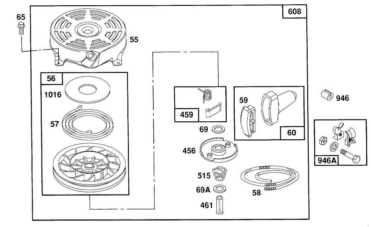 Parts for Briggs & Stratton 122702-0175-01: Rewind Assembly Parts