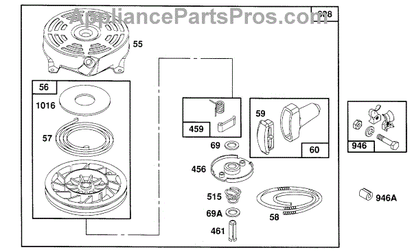 Parts for Briggs & Stratton 123782-0118-01: Rewind Assembly Parts