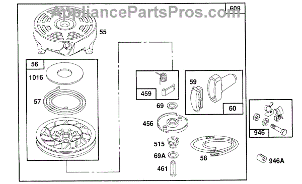Parts for Briggs & Stratton 123807-0217-01: Rewind Assembly Parts