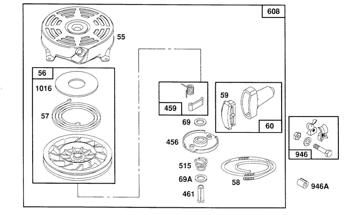 Parts for Briggs & Stratton 124802-0209-99: Rewind Assembly Parts
