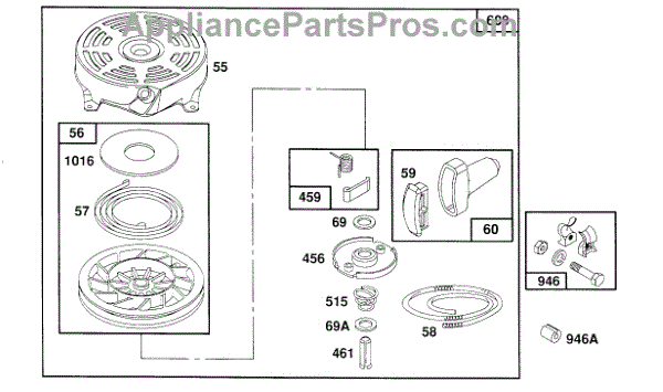 Parts for Briggs & Stratton 124802-0233-99: Rewind Assembly Parts
