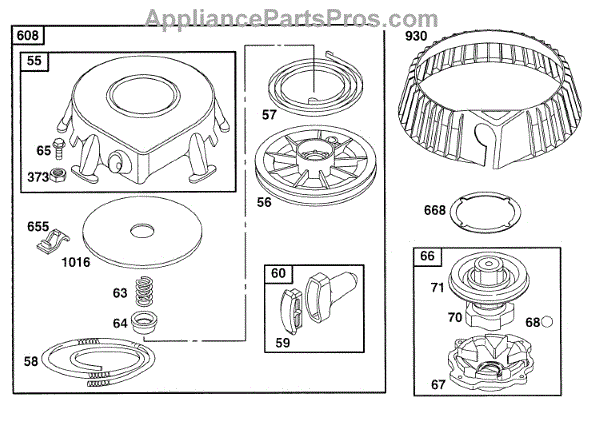 Parts for Briggs & Stratton 19C432-0056-01: Rewind Assembly Parts