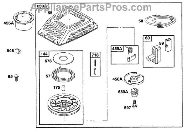 This is an OEM replacement part for the recoil pulley and spring assembly, also called the rewind pulley and spring. The recoil starter, which is operated by a rope, will engage the drive cup on the flywheel, which will start the engine when it is pulled. These are commonly found on lawnmowers and similar outdoor equipment. If the rewind begins to bind when pulling the rope, or if it does not rewind easily, it could indicate that a replacement is needed. In addition, if the plastic on the old pulley is worn and cracked, it is a good idea to replace it before it fails entirely. This OEM assembly comes from the manufacturer and includes the pulley and the spring. The pulley is made from plastic, and the spring is metal. The part can be used for a range of machines and brands. The pulley and spring assembly are compatible with lawnmowers, tillers, and other small engines from brands like Craftsman, Briggs & Stratton, Snapper, Lawn-Boy, Toro, and Cub Cadet.