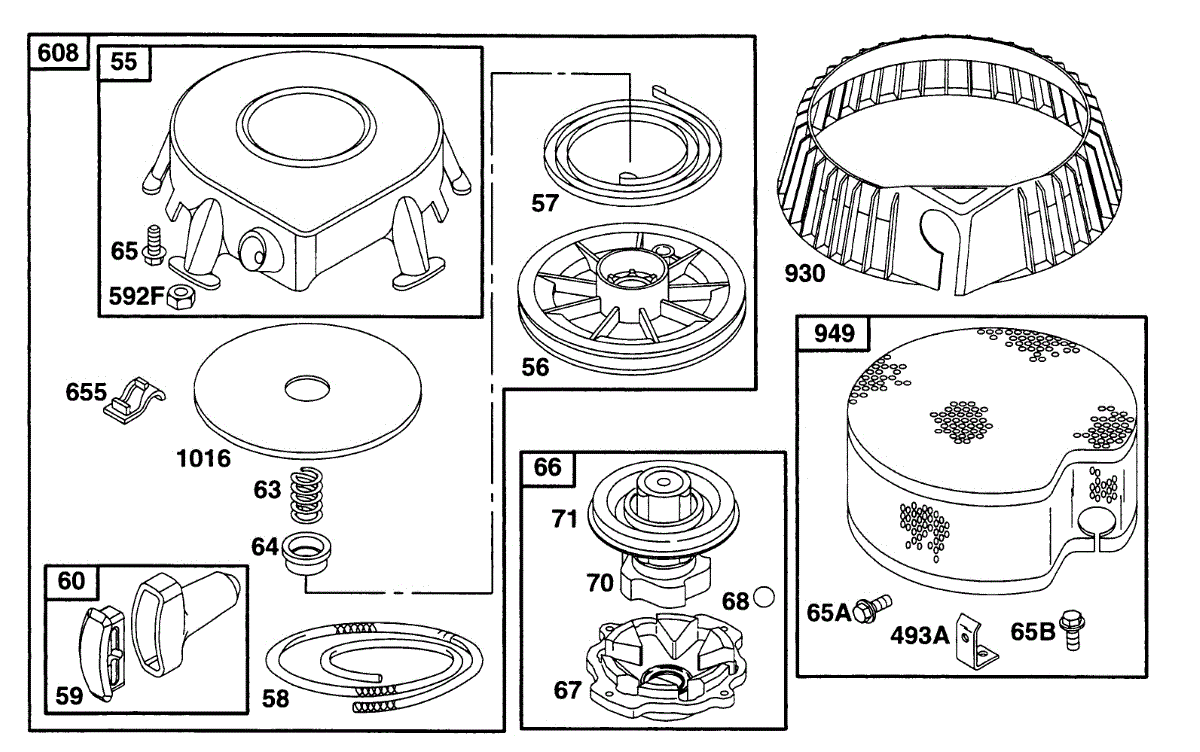 Parts for Briggs & Stratton 190412-6160-02: Rewind Assy Parts