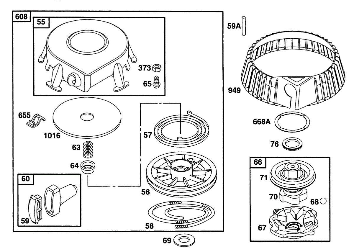 Parts for Briggs & Stratton 221435-0172-01: Rewind Assy Parts