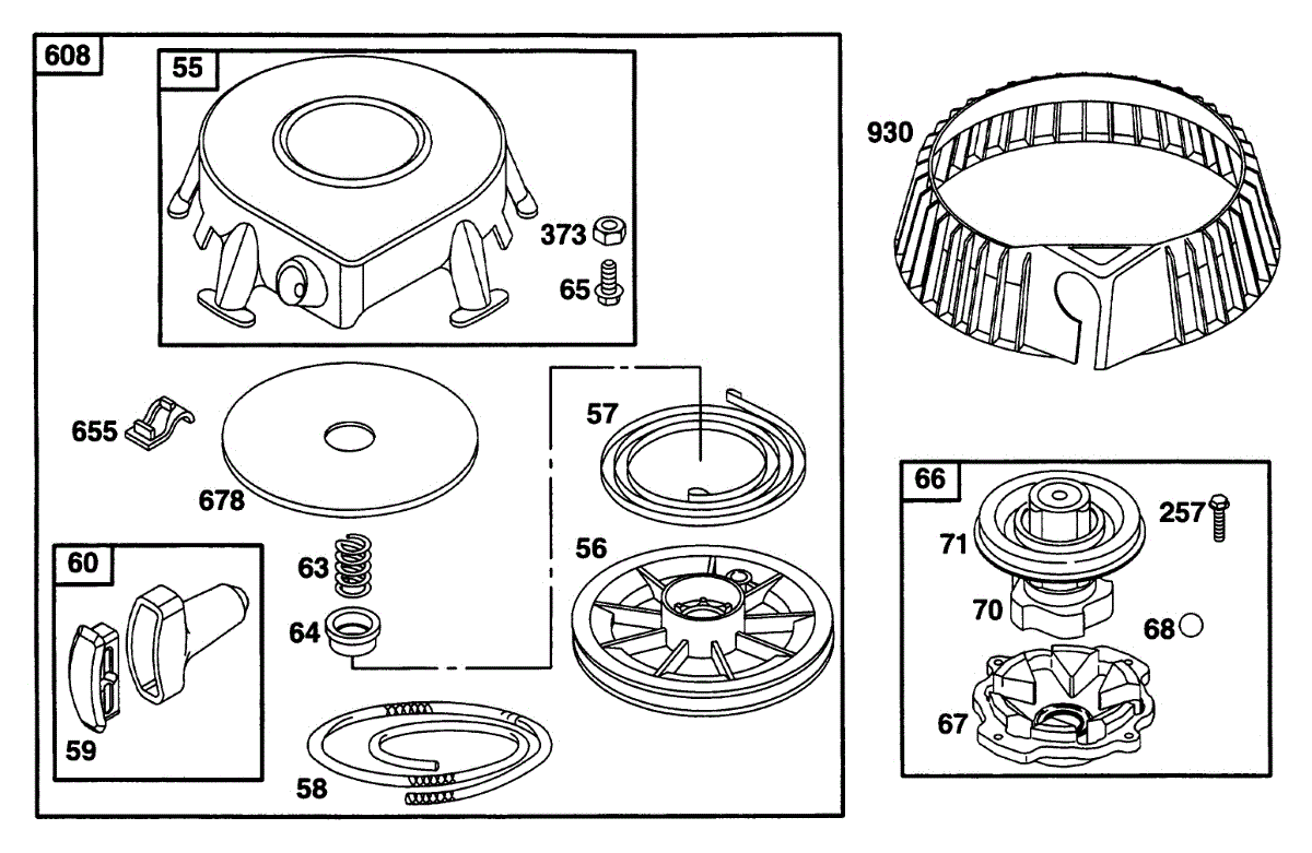Engine won't start or pull cord doesn't retract? This rewind starter housing restores pull-start function. Moderate DIY repair for lawn equipment engines.