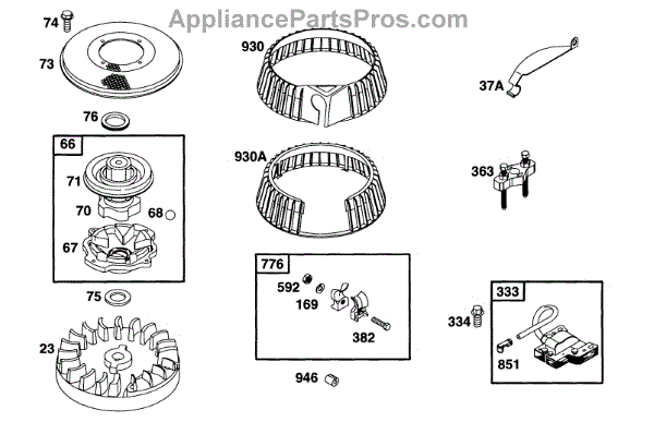 Parts for Briggs & Stratton 095902-0118-01: Rewind, Flywheel, Elect Parts