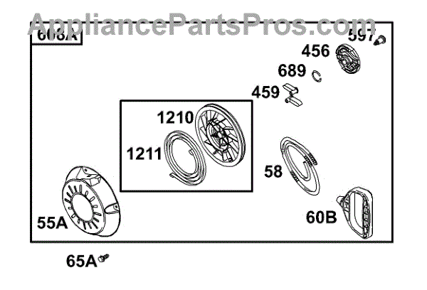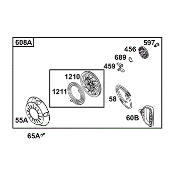 This is an OEM replacement part for the recoil pulley and spring assembly, also called the rewind pulley and spring. The recoil starter, which is operated by a rope, will engage the drive cup on the flywheel, which will start the engine when it is pulled. These are commonly found on lawnmowers and similar outdoor equipment. If the rewind begins to bind when pulling the rope, or if it does not rewind easily, it could indicate that a replacement is needed. In addition, if the plastic on the old pulley is worn and cracked, it is a good idea to replace it before it fails entirely. This OEM assembly comes from the manufacturer and includes the pulley and the spring. The pulley is made from plastic, and the spring is metal. The part can be used for a range of machines and brands. The pulley and spring assembly are compatible with lawnmowers, tillers, and other small engines from brands like Craftsman, Briggs & Stratton, Snapper, Lawn-Boy, Toro, and Cub Cadet.