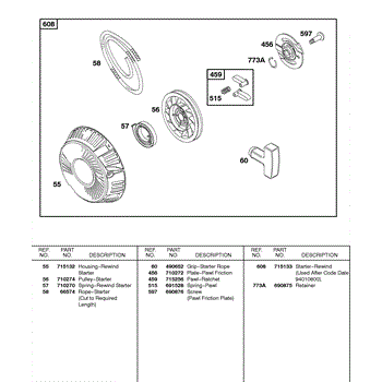 Parts for Briggs & Stratton 085432-0230-B1: Rewind Starter Parts