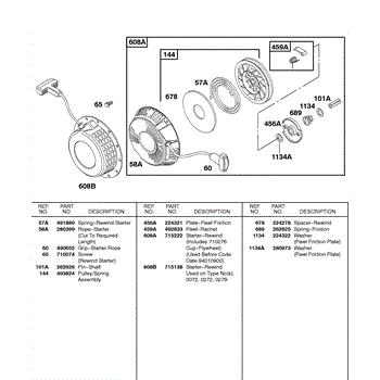 Parts for Briggs & Stratton 085432-0078-01: Rewind Starter Parts