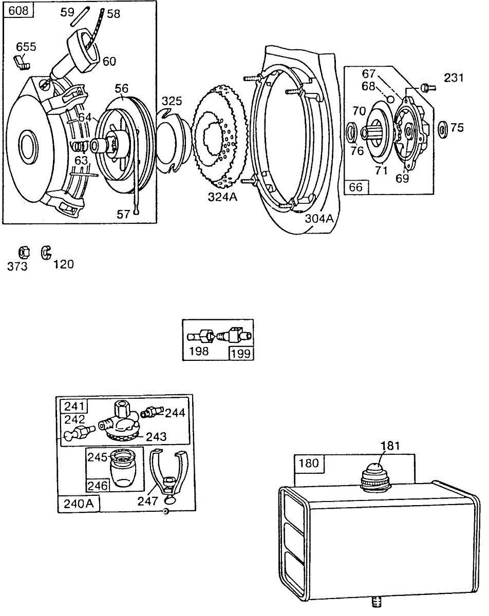 Parts for Briggs & Stratton 422437-4845-E1: Rewind Starter Assy,Fueltank Parts