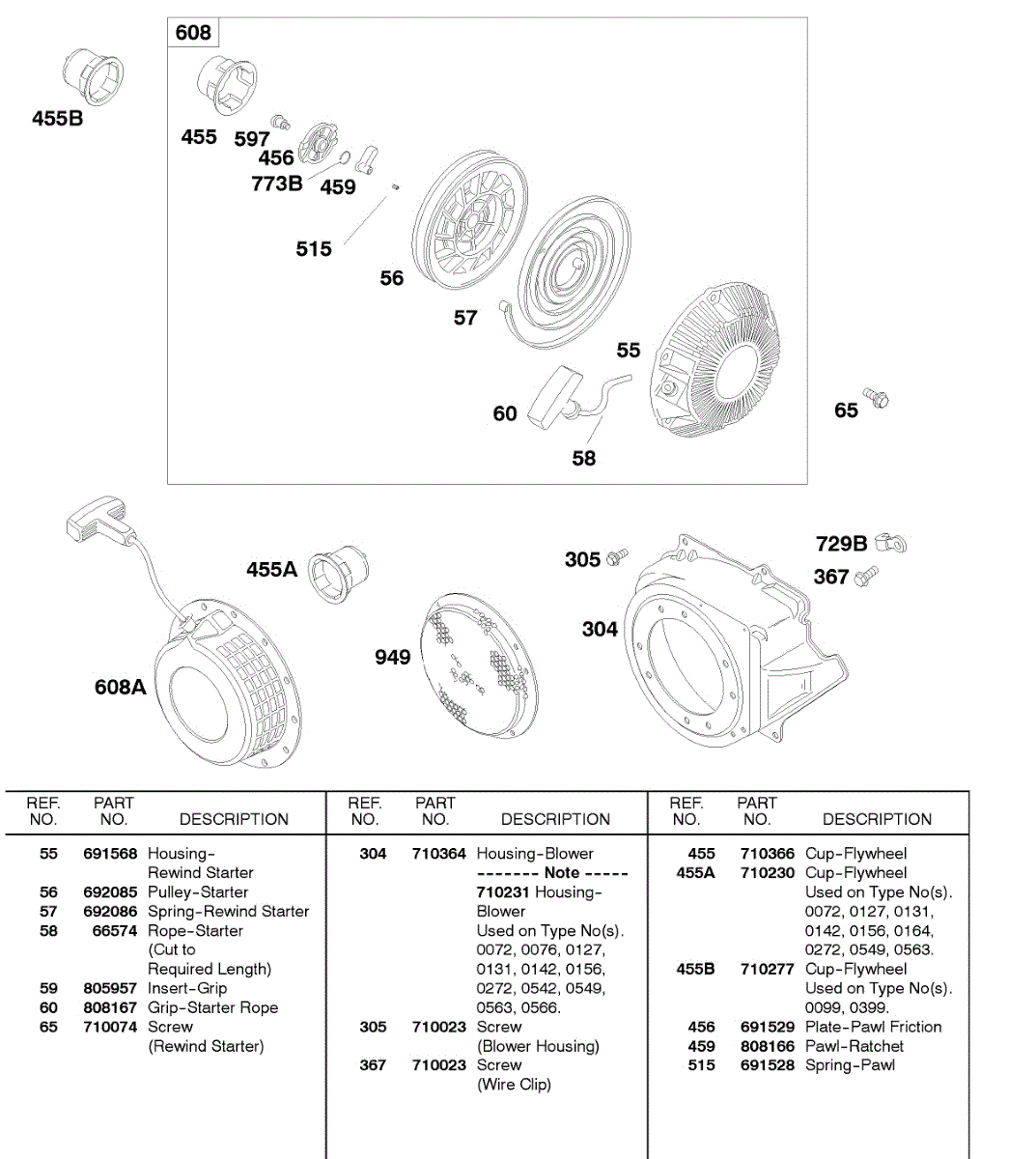 Parts for Briggs & Stratton 185437-0165-E9: Rewind Starter, Blower Housing Parts