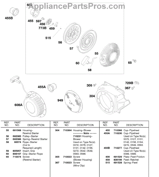 Parts for Briggs & Stratton 185437-0280-E9: Rewind Starter, Blower Housing Parts